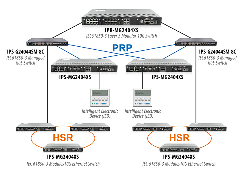 | CTC's IPR/IPS Series are equipped with HSR/PRP function, which can achieve zero packet loss and seamless redundancy. The switches are fully compliant with IEC 61850-3 and IEEE 1613 requirements and is designed for power substation applications. |