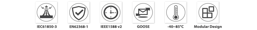 IEC61850-3, IEEE1613, EN62368-1, CE and FCC certified |